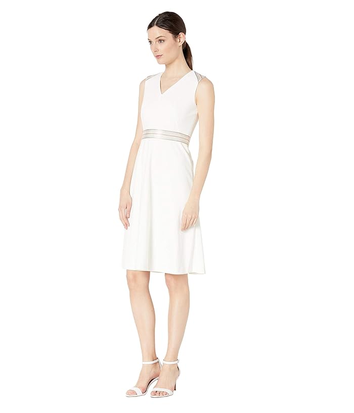 Calvin Klein V-Neck A-Line Dress with Ribbon Detail (White) Womens Dress