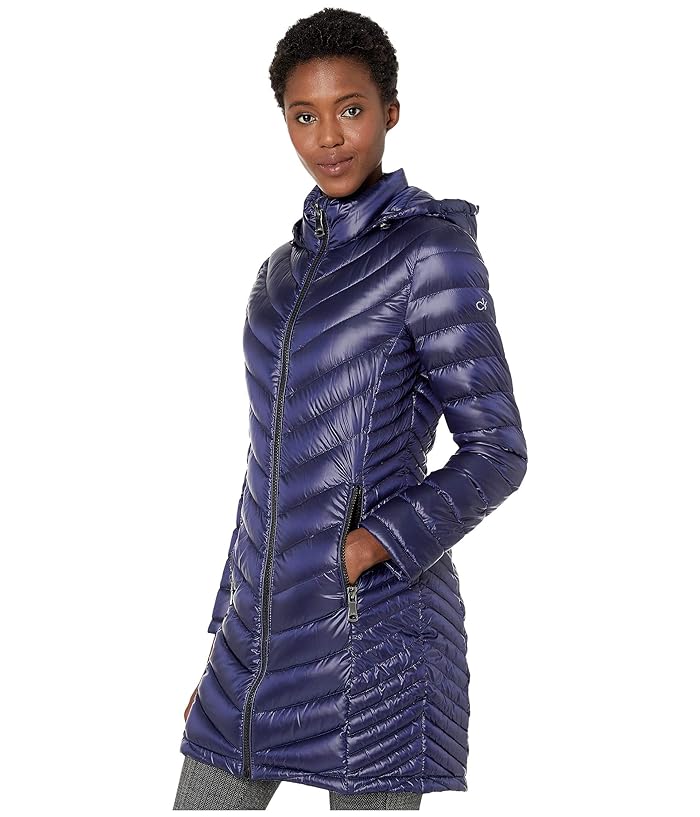 Calvin Klein Walker Length Packable with Chevron Quilt Lines (Pearlized Artisan Blue) Womens Coat