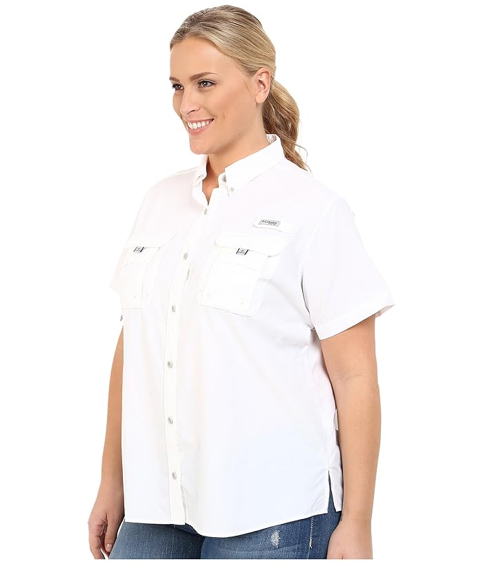 Columbia Plus Size Bahamatm S/S Shirt (White) Womens Short Sleeve Button Up