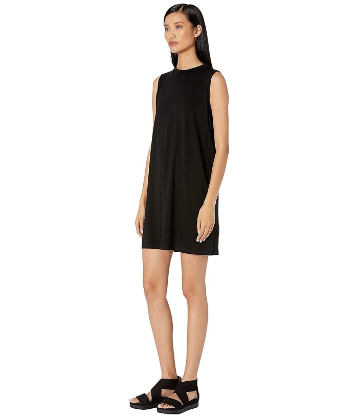 Eileen Fisher Fine Tencel Jersey Mock Neck Slim Knee Length Dress (Black) Womens Dress