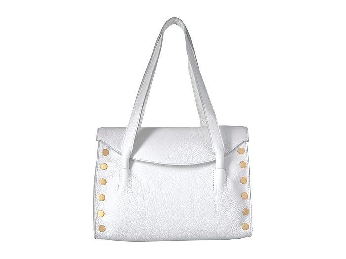Make a fashionable mark when you add the polished Hammitt Shawn Medium bag. Made of softly pebbled leather with stud detail. Flap with magnetic closure. Dual shoulder straps with detachable, adjustable crossbody strap. Exterior front slip pocket. Signature logo detail at front. Protective detail at base. Lined interior. Interior back
