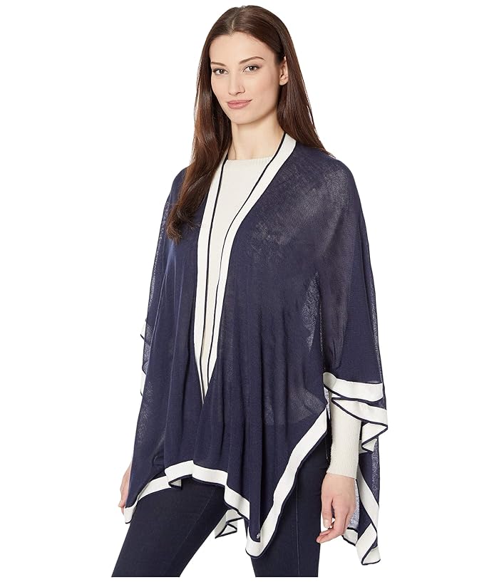 LAUREN Ralph Lauren Contrast Trim Ruana (Navy) Womens Clothing