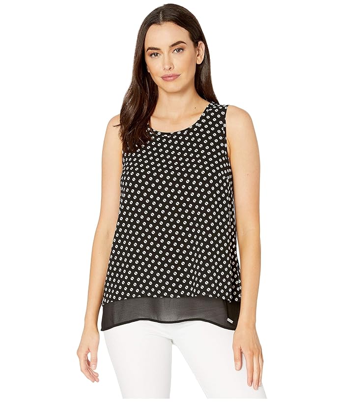 This versatile MICHAEL Michael Kors Sliced Dot Sleeveless Cut Out Top, thats perfect for any day of the week. Casual tank top in a relaxed fit. Printed poly fabrication with a solid bottom for a layered look. Round neckline and sleeveless construction. Brand hardware at left hip. Layered hemline with a flyaway back. 100 percent polyester; 100 percent polyester. Machine wash cold and tumble dry low. Imported. Measurements: Length: 28 in Product measurements were taken using size SM. Please note that measurements may vary by size.