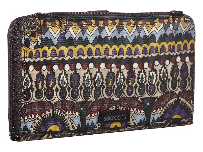 Fascinate your senses and give your style a colorful vibe with the Sakroots Artist Circle Large Smartphone Crossbody. Made of coated canvas. Zipper closure. Detachable wristlet strap with detachable crossbody strap. Exterior front slip pocket. Signature logo detail in back. Lining made of polyester. Lining print may vary. Interior center zip pocket. 16 interior credit card slots with ID window. Imported. Measurements: Bottom Width: 7 3 4 in Depth: 1 1 2 in Height: 5 in Strap Length: 53 in Strap Drop: 26 in Accessory Strap Length: 12 in Accessory Strap Drop: 5 in Weight: 9.2 oz