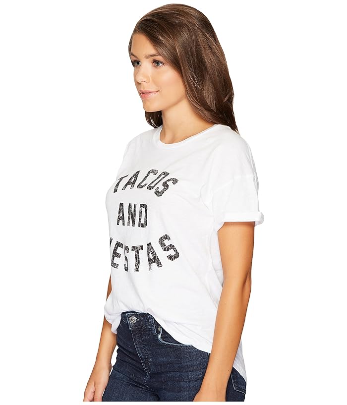 The Original Retro Brand Tacos and Siestas Slub Rolled Short Sleeve Tee (White) Womens T Shirt