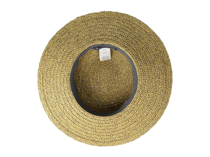 A pleated ribbon hatband adorns the Betmar Marie sun hat giving your look a feminine flair. Flat crown with wide brim. Interior sweatband for added comfort. 79 percent paper, 12 percent polypropylene, 9 percent polyester. Do not wash. Imported. Measurements: Circumference: 16 in Brim: 4 in