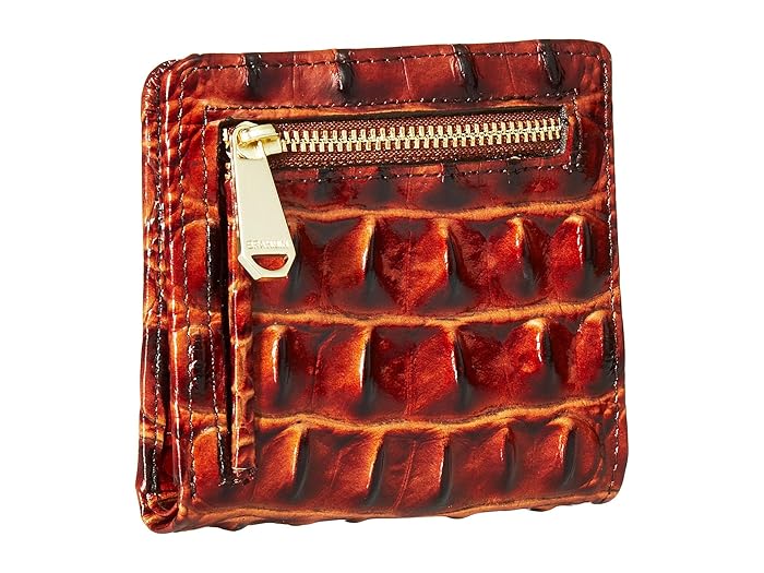 - in billfold, an ID slot, and space for 7 credit cards, this petite wallet doesnt skimp on organization. Made of embossed leather. Snap closure. Exterior back zip pocket. Signature logo engraved hardware detail. Lined interior. Seven interior credit card slots with ID window. Imported. Measurements: Bottom Width: 4 in Depth: 3 4 in Height: 3 3 4 in Weight: 12.8 oz