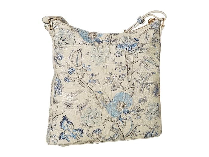 - top style that tapers out slightly to create a sleek silhouette. Adjust the strap to fit your needs, and stay organized with multiple interior pockets and a key clip. Made of embossed leather. Zipper closure. Adjustable crossbody strap. Exterior back slip pocket. Signature logo engraved hardware detail at front. Flat bottom. Lined interior. Interior back