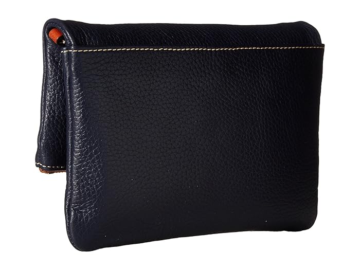 Dooney and Bourke Pebble Fold-Over Zip Crossbody (Midnight Blue with Tan Trim) Cross Body Handbags