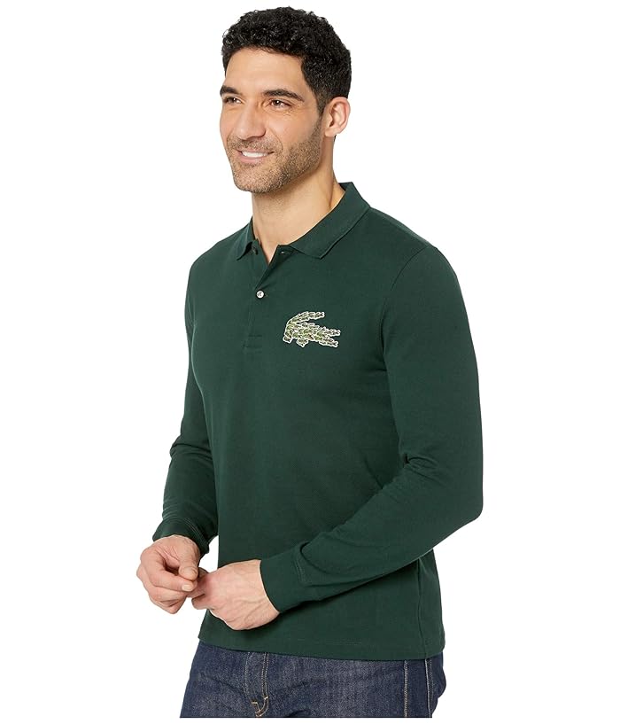 Lacoste Long Sleeve Heavy Pique Croco Magic Polo Regular (Sinople) Mens Clothing