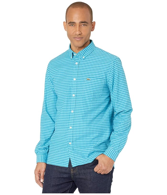 Lacoste Long Sleeve Oxford Gingham Button Down Collar Regular (Cicer/Willo) Mens Sweater