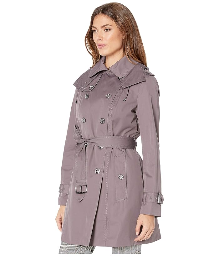 - interior lining and a removable hoodie for versatile wear. Notched lapel collar and long sleeves. Hand pockets at the sides. Adjustable buckle at the waistline. Double breast button closure. Straight hemline with a single back vent. 56 percent cotton, 44 percent polyester; Lining: 100 percent polyester. Machine wash. Imported. Measurements: Length: 33 in Chest Measurement: 36 in Sleeve Length: 30 in Product measurements were taken using size SM. Please note that measurements may vary by size.