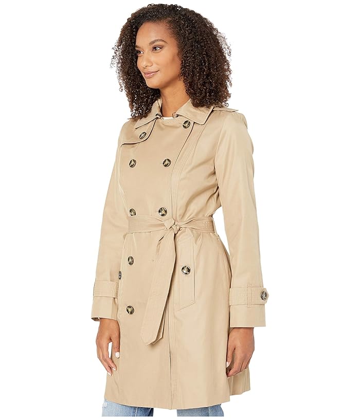 London Fog Ryan Double Breasted Trench Coat with Removable Hood (British Khaki) Womens Coat