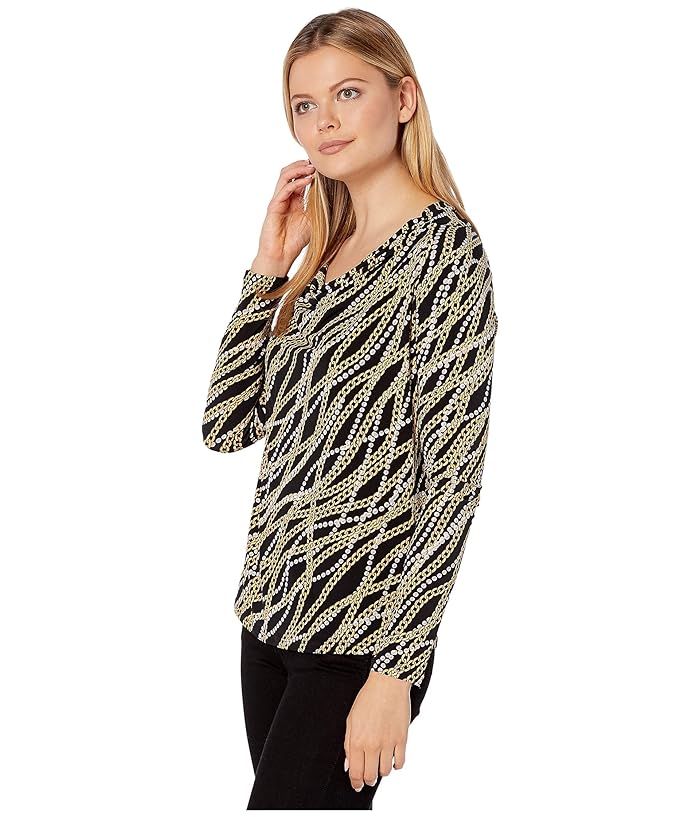 MICHAEL Michael Kors Bias Link Cowl Long Sleeve Top (Black/Gold) Womens Clothing