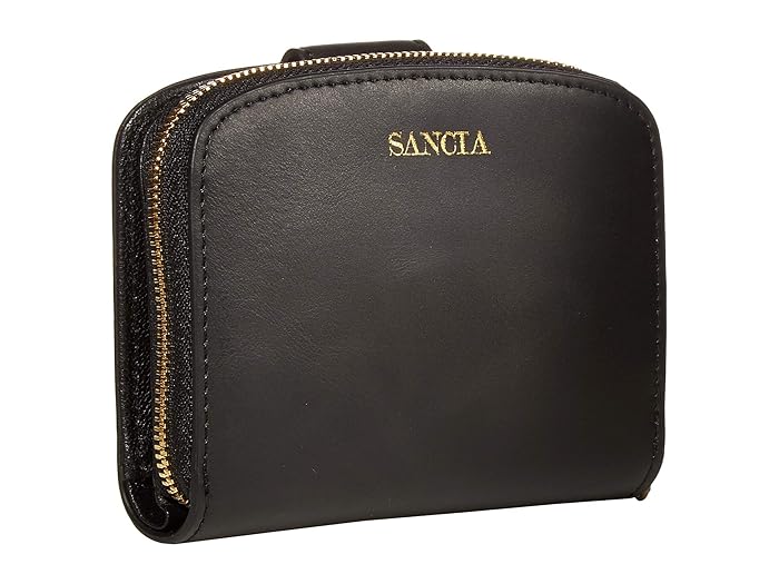 A simple and sleek style that perfectly completes your look, the leather SANCIA Faye Wallet. Tab wit snap closure and exterior zip pocket. Signature logo detail at back. Polyester lining features interior slip pockets and four credit card slots. Imported. Measurements: Bottom Width: 4 1 2 in Depth: 1 in Height: 4 in Weight: 3.6 oz