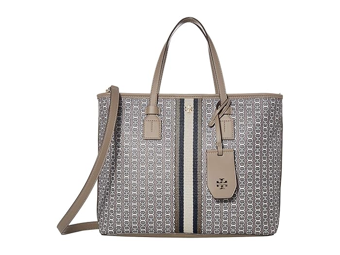 Tory Burch Gemini Link Canvas Small Tote (Gray Heron Gemini Link) Handbags