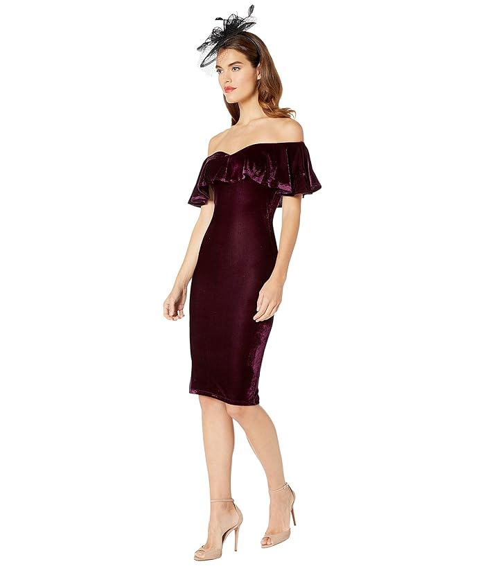 Unique Vintage Velvet Draped Off Shoulder Sophia Wiggle Dress (Eggplant) Womens Dress
