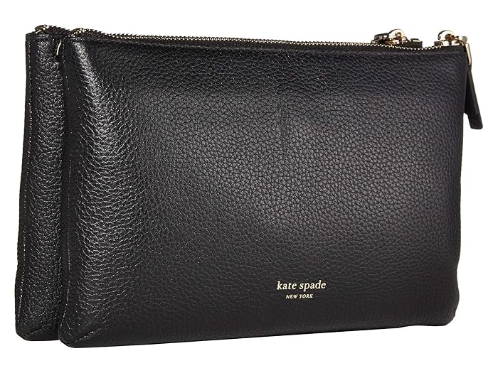 Kate Spade New York Polly Medium Double Gusset Crossbody (Black) Handbags